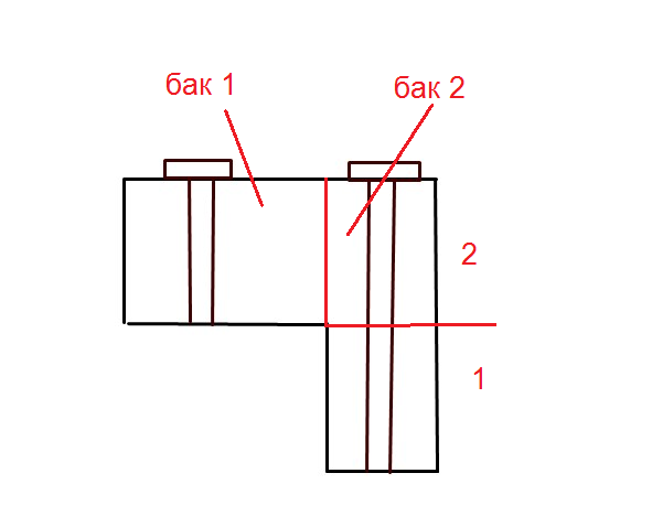 Бак 1 - нижняя часть длинного дута до зоны пересечения с вторым дутом