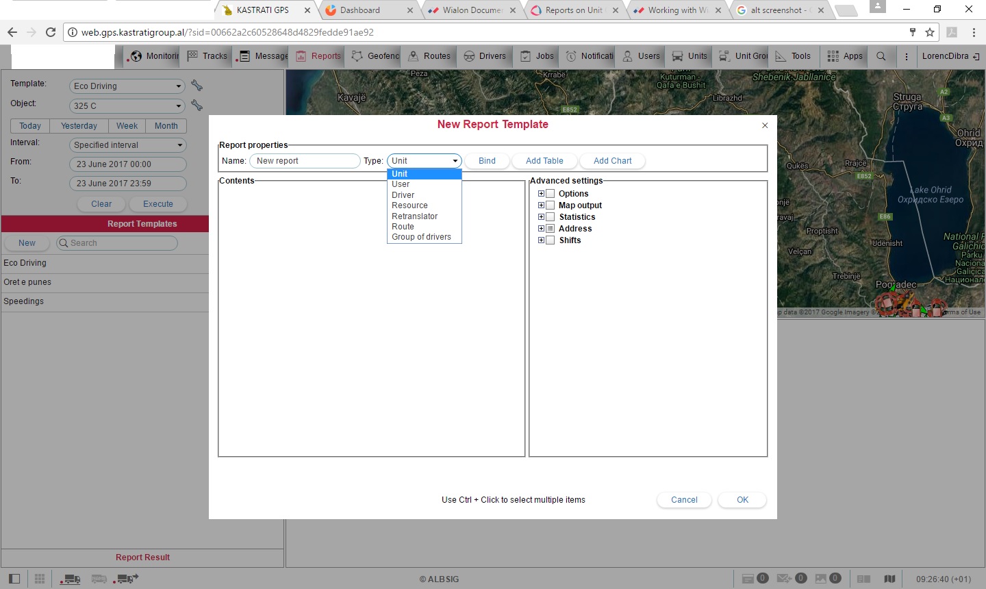 I want to create e unit group raport for engine hours but no unit group option displayed at new raport.