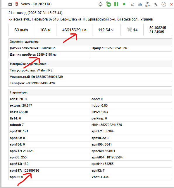 Мы задали счетчик пробега через датчик пробега и выставили текущее значение допустим 1000км это было например в 10 00 и в этот момент было сообщение от объекта с такими показаниями датчика.