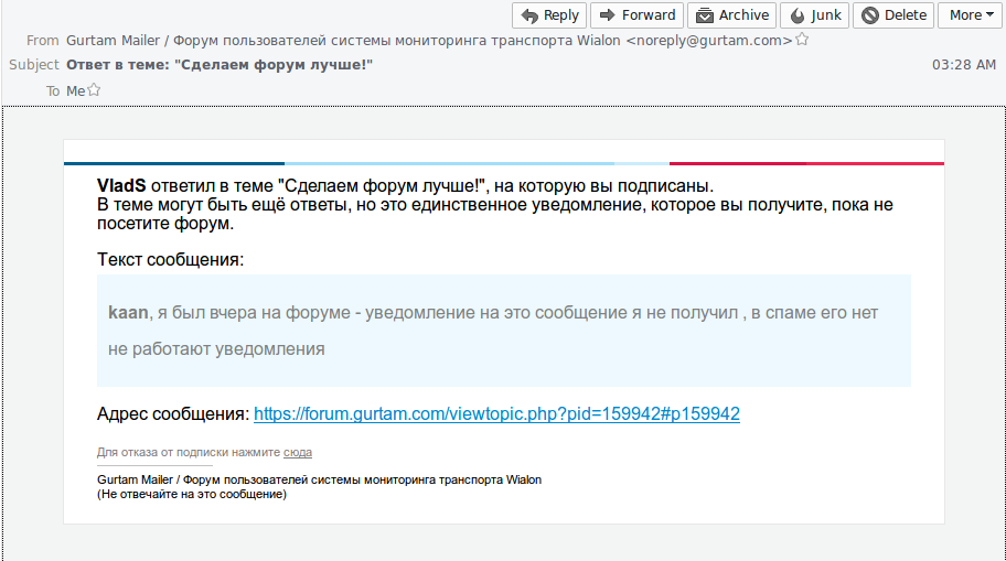Но если после публикации предыдущего поста вы не заходили на форум, то мы считаем, что уже информировали вас в прошлый раз и напрасно спамить вас сообщениями не имеет смысла. Кстати, проверьте папку спам - не попадают ли наши сообщения туда.