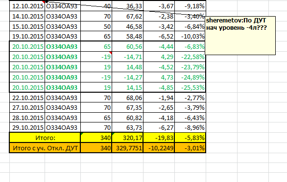 возможно у Вас "съехала" тарировка. Это бывает, ничего тут криминального нет. Все производители ДУТ рекомендуют проводить повторную калибровку 2 раза в год, при смене топлива с зимнего типа на летний и наоборот. Возможно окислись трубки, изменились свойства диэлектрика (топлива), повреждение электотехнической части ДУТ и что-нибудь из этого, Водила шустрит ?. Гадать можно много. Даже очень.