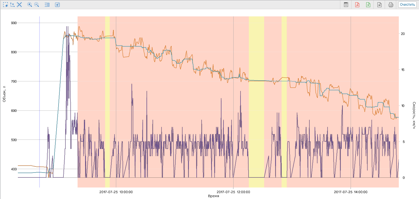 Господа Как можно объяснить поведение ДУТ эскорт100 (подключён по 485) на графике. Откуда равномерное увеличение и уменьшение топлива (горки)?