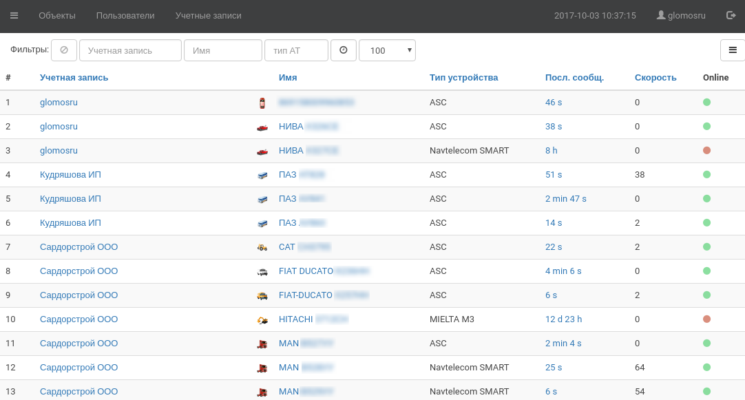 Фильтрация данных в WialonCRM