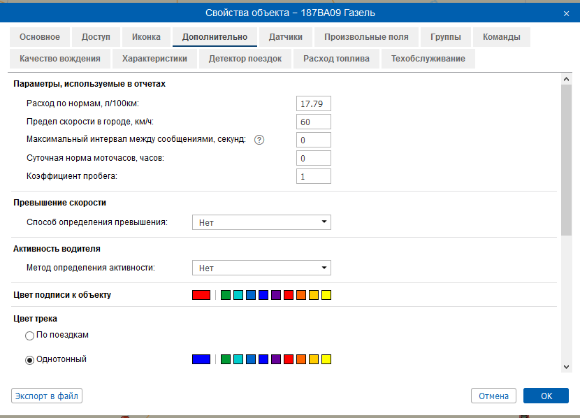 После некоторых прений, разработчиками была добавлена строка во вкладке "дополнительно" с возможностью внесения норм расхода топлива по старому механизму расчета - т.е. литры\100км. Многих клиентов интересует именно такой расчет, без влияний датчика полезной работы двигателя и т.д.