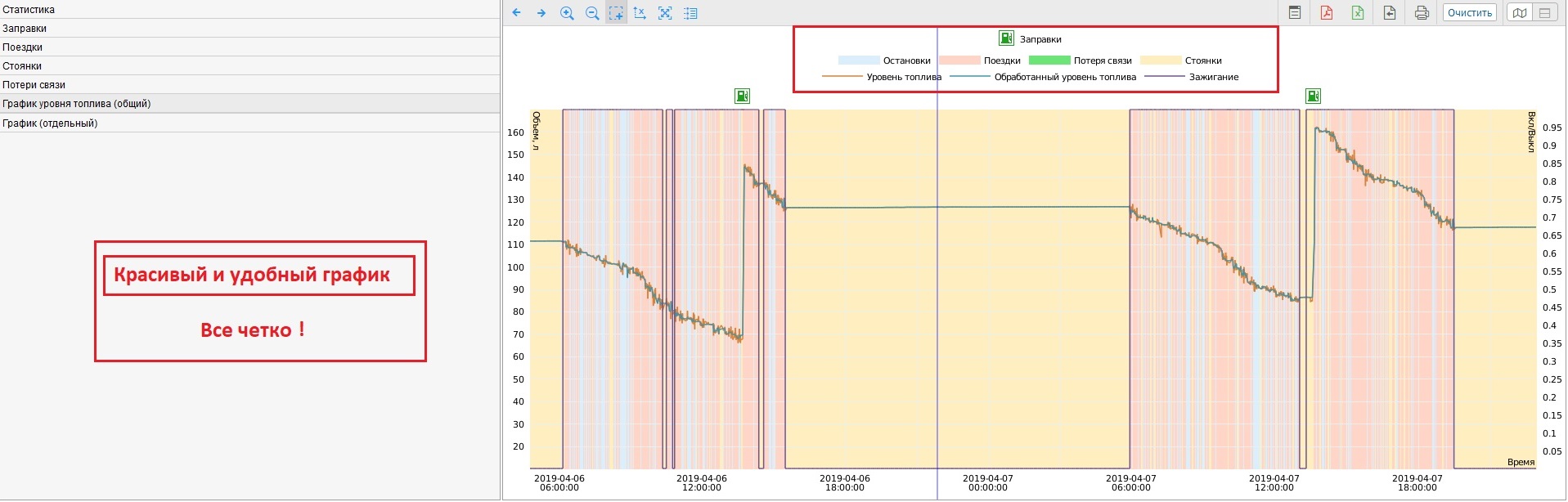 Собственно хотелось бы, чтобы линии на графиках соответствовали информации в отчетах! А именно линия датчика Зажигания.