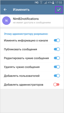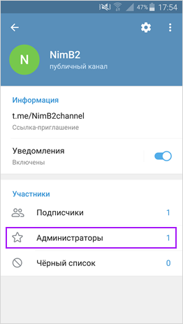 • выберите опцию “Администраторы” и “Добавить администратора”;
