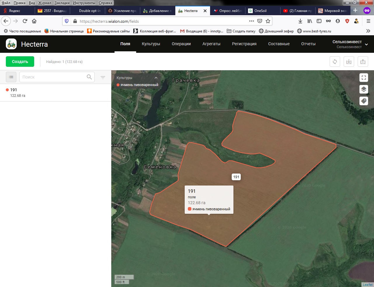 Теперь в лейблах полей на карте также отображается информация о площади поля.