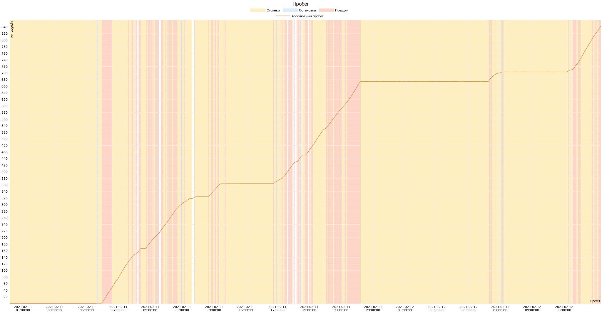 Моточасы и пробег в это время увеличиваются, обороты и скорость CAN меняются - понятно, что машина в движении.