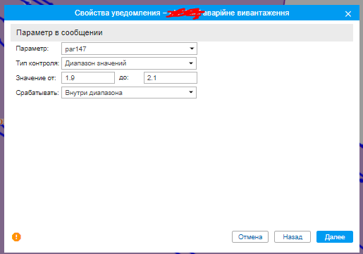 Снимок 3 - Настройки уведомления: срабатывание  на значение параметра param147=2
