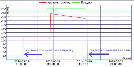 График расхода топлива плавный, а система понимает как СЛИВ.